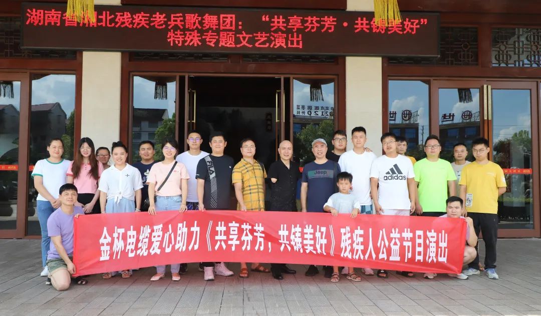 為慶祝建黨101周年,支持殘疾人文藝事業發展,資助社會公益事業,8月14日,金杯電纜組織二十余名職工觀看湖南省湘北殘疾老兵歌舞團《共享芬芳,共鑄美好》特殊專題文藝演出。